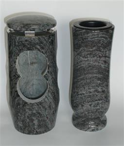 Souprava hřbitovních doplňků, které jsou vyrobeny se stejným designovým prvkem a ze stejného druhu žuly.